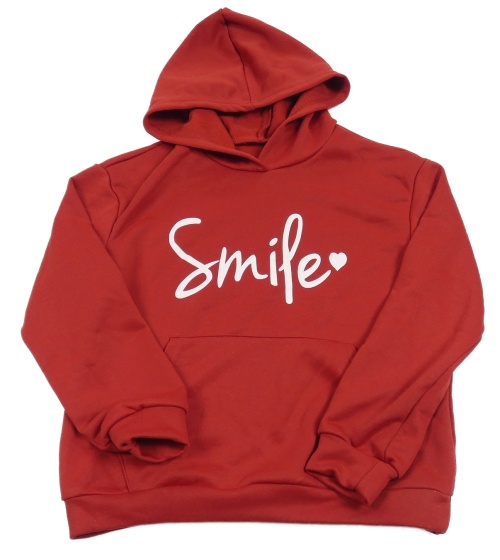 Tmavočervená mikina s nápisom a srdiečkom a vreckom a kapucňou