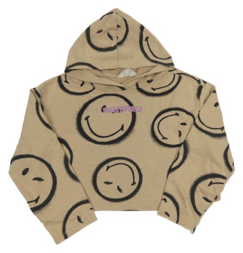Béžová oversize crop mikina so smajlíkmi a nápisom a kapucňou H&M