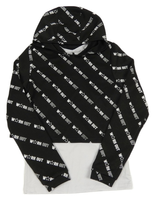 Čierna crop mikina s nápisy a všitým topem s kapucňou