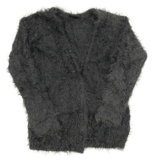 Tmavosivý chlpatý svetrový cardigan Page one young