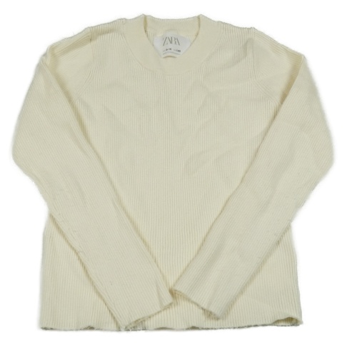 Smotanový rebrovaný úpletový crop sveter ZARA