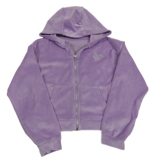 Fialová zamatová prepínaci crop mikina so srdiečkom a kapucňou Nutmeg