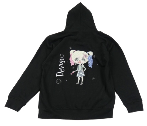 Čierna prepínaci mikina so srdiečkami a dívkou a kamienkami a kapucňou AWDis