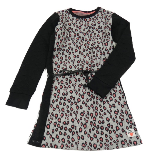Čierno-sivo-neónově ružová úpletová šatová tunika s leopardím vzorom