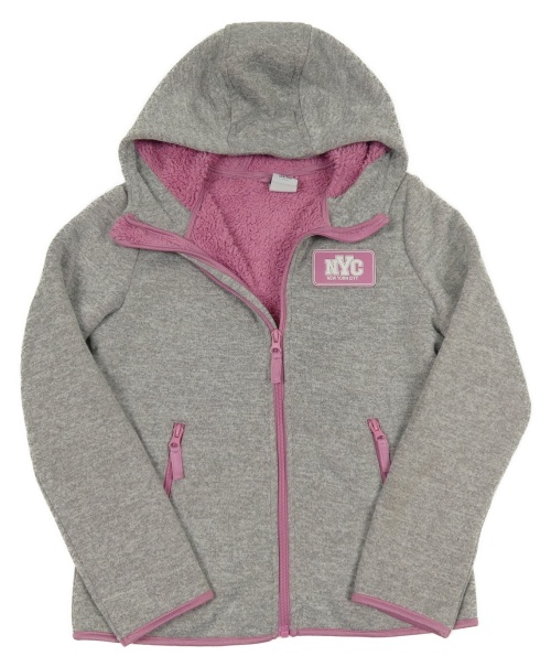 Sivo-ružová pletená melírovaná prepínaci zateplená mikina s výšivkou a kapucňou Y.F.K.