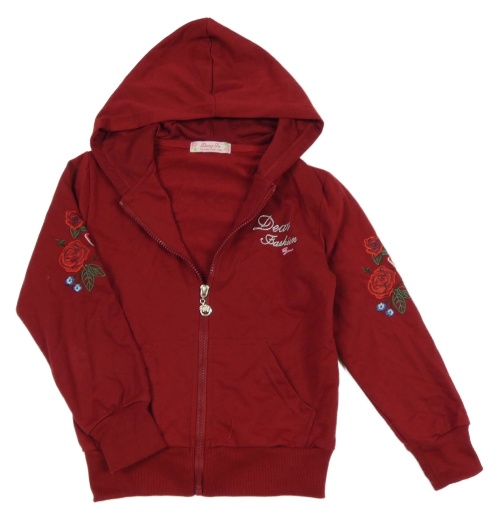 Bordó prepínaci mikina s nápismi a růžemi a kapucňou