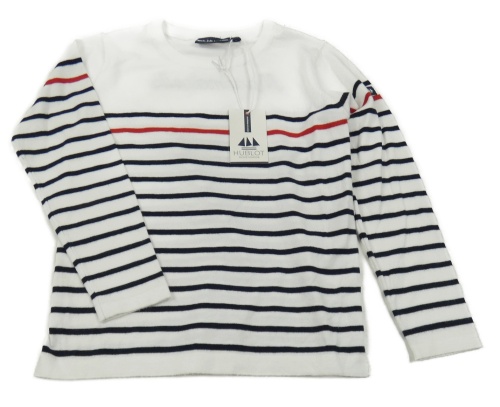 Nové - Bielo-čierno-červený ľahký sveter s pruhmi Hublot