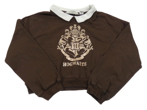Čokoládová crop mikina s potlačou a golierikom H&M