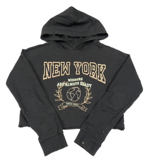 Antracitové crop mikinotriko s nápisom a kapucňou