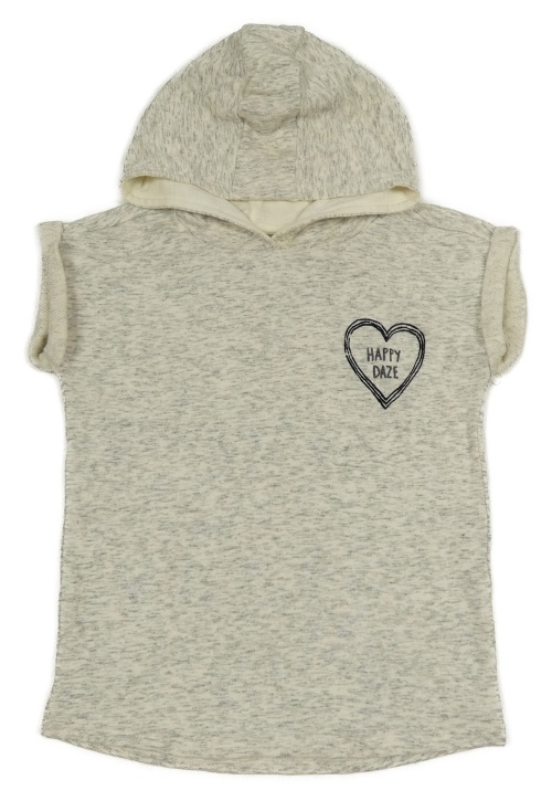 Sivo-smotanová melírovaná tepláková vesta so srdiečkom s nápismi a kapucňou Next