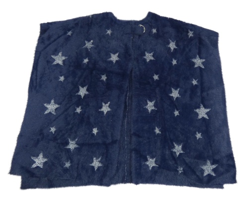 Tmavomodré chlpaté svetrové pončo s hviezdičkami