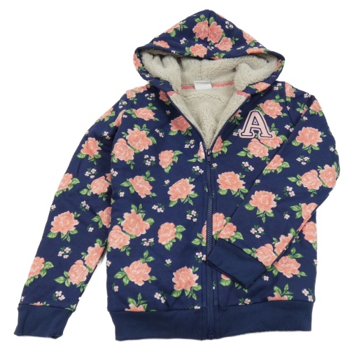 Tmavomodrá kvetovaná zateplená prepínaci mikina s písmenem a kapucňou Pocopiano