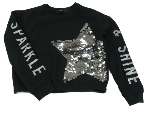Čierne crop mikina s nápismi a hvězdou z flitrů C&A