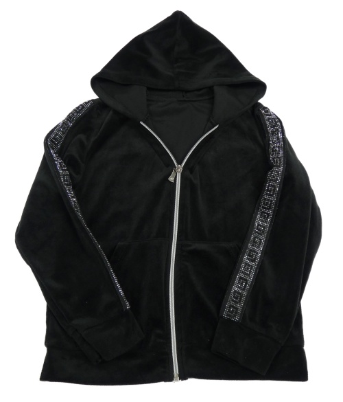 Čierna plyšová prepínaci mikina s kamienkami a kapucňou