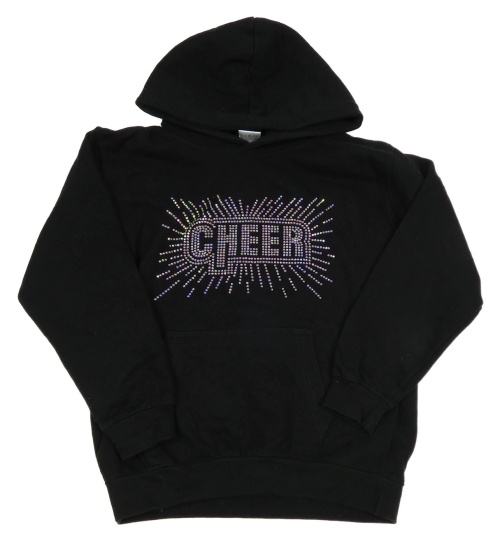 Čierna mikina s nápisom a kamienkami a vreckom a kapucňou