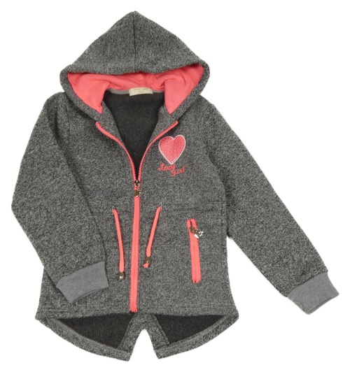 Sivá melírovaná pletená prepínaci mikina so srdcem s kamienkami a kapucňou