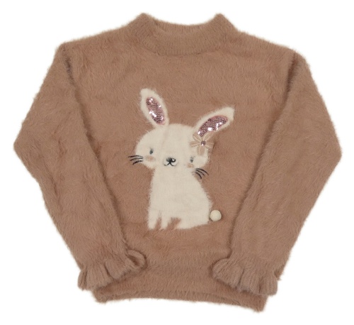 Staroružový chlpatý sveter s králikom s flitrami