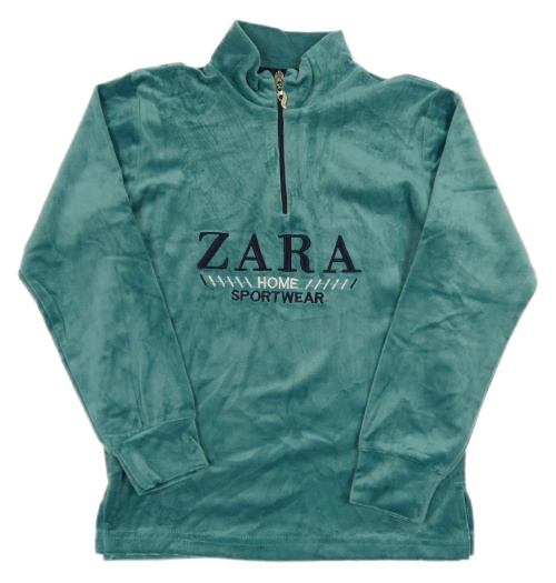 Modrozelená plyšová mikina s nápismi