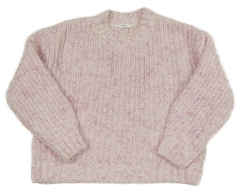 Svetloružová -biely melírovaný rebrovaný žinylkový crop sveter M&S