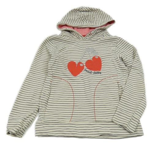 Béžovo-čierna pruhovaná mikina so srdiečkami a kapucňou Yigga
