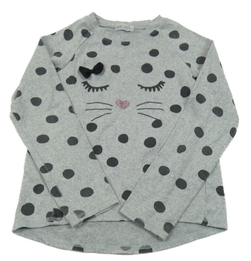 Sivý ľahký sveter s mačkou a bodkami H&M