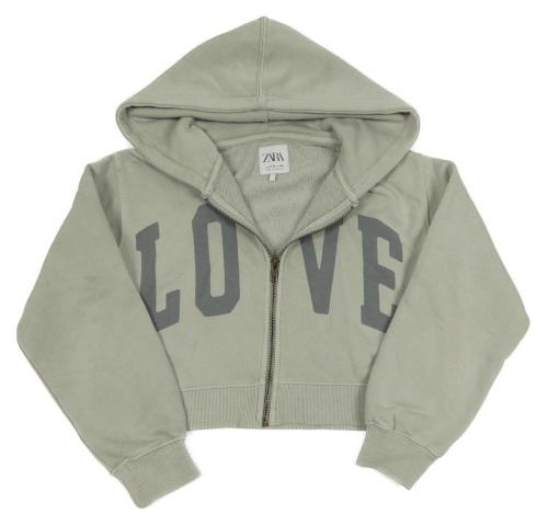 Svetlosivá crop prepínaci mikina s nápisom a kapucňou Zara