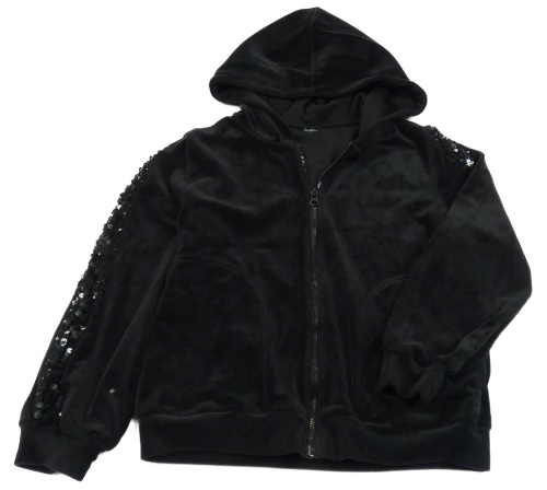 Čierna plyšová prepínaci mikina s pruhem z flitrů a kapucňou LINDEX