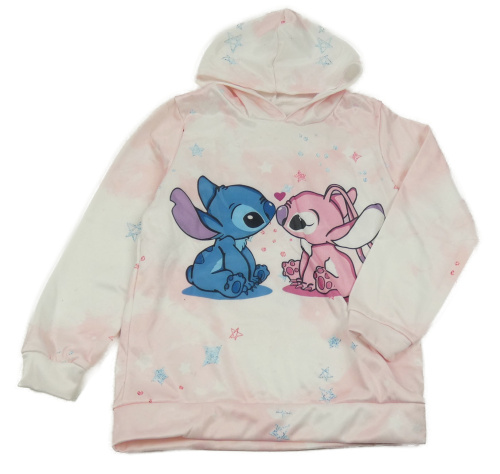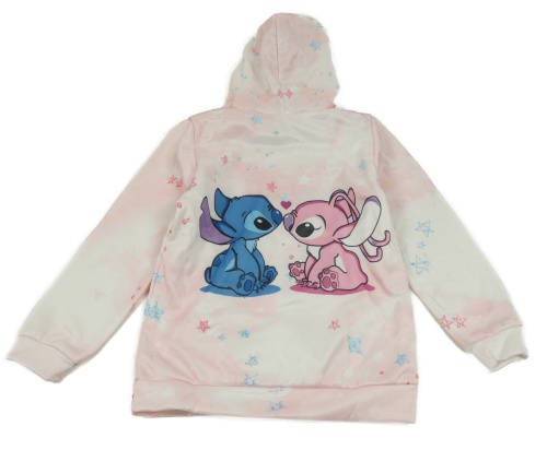 Svetloružová batikovaná mikina so Stitchem s Angel a kapucňou