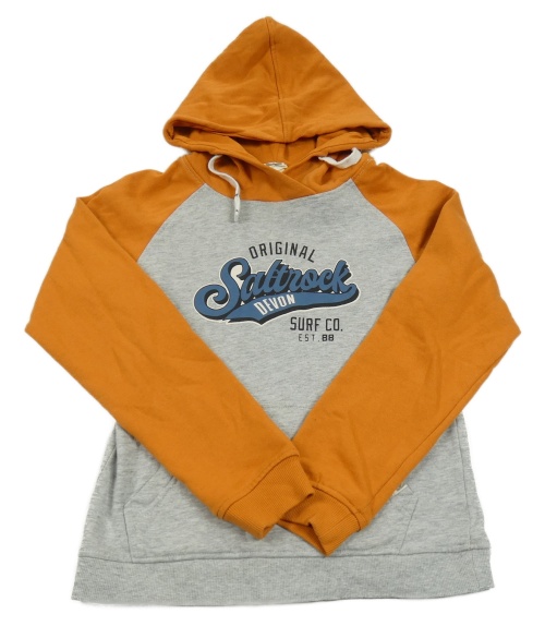 Sivo-tmavooranžová melírovaná mikina s logom a vreckom a kapucňou SALTROCK