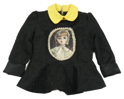 Čierna vzorovaná tepláková podšitá tunika s dievčatkom a korálkami a žltým golierikom