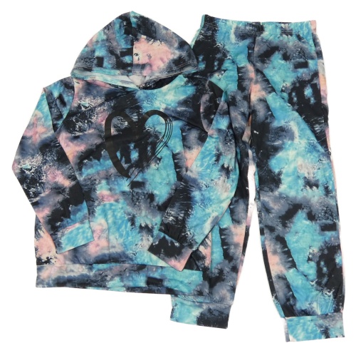 2set - Farebná batikovaná mikina so srdiečkom a kapucí + tepláky