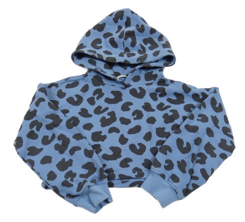 Modro-čierna crop mikina s leopardím vzorom a kapucňou Tom Tailor