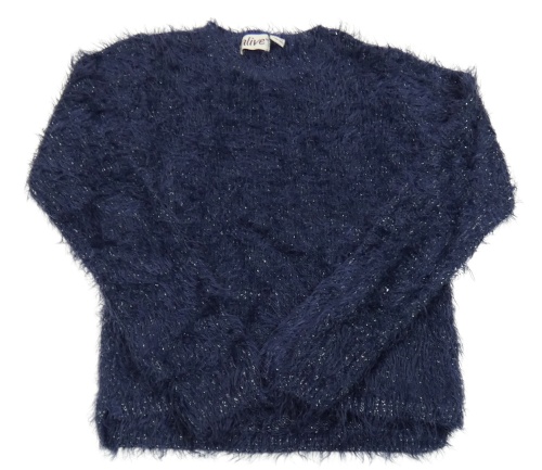Tmavomodrý chlpatý trblietavý sveter Alive
