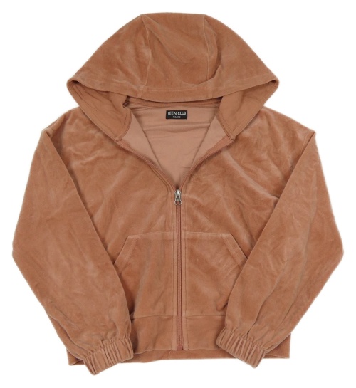 Staroružová zamatová crop prepínaci mikina s kapucňou