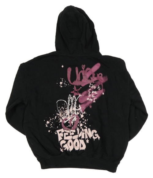 Čierna oversize mikina s nápismi a srdiečkami a motýlkom a kapucňou George
