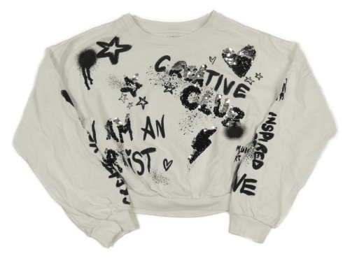 Biela crop mikina s nápismi a flitrami Next