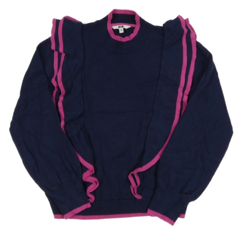Tmavomodro-ružový sveter s volánikom WE