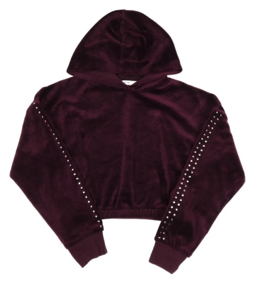 Vínová zamatová crop mikina s plíšky a kapucňou George