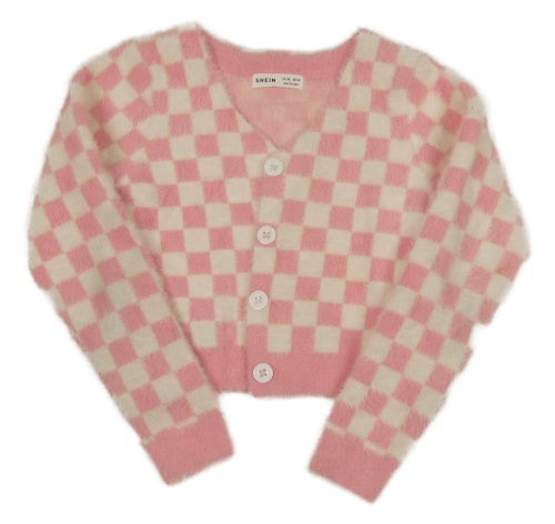 Ružovo-biely kockovaný chlpatý prepínaci crop sveter Shein