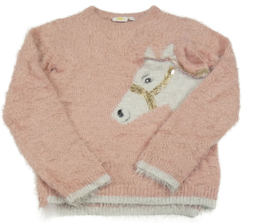 Ružový chlpatý sveter s koníkem kids