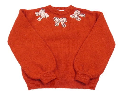 Červený vlnený sveter s mašlemi z perel H&M