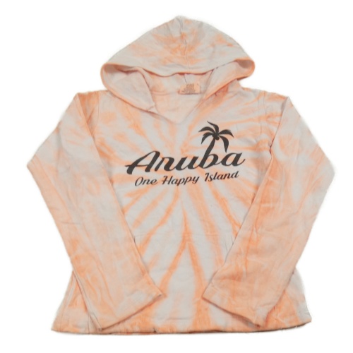 Bielo-oranžová batikovaná crop mikina s nápisom a kapucňou