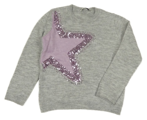 Sivý melírovaný sveter s hviezdou a flitrami George