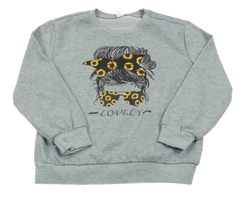 Sivá mikina s dívkou s okuliarmi a slunečnicemi Shein