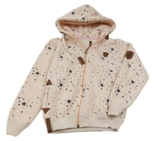 Svetloružová melírovaná prepínaci zateplená mikina s hviezdami a kapucňou