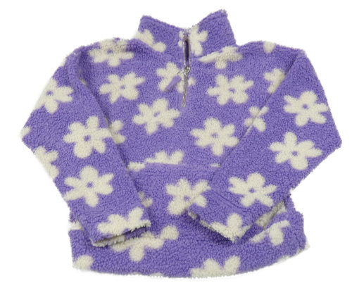 Fialová huňatá mikina kvety Tu
