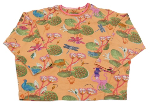 Svetlooranžová oversize mikina s kvietkami a zvieratkami oilily