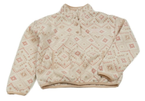 Smetanovo-ružovo-pudrová vzorovaná fleecová mikina