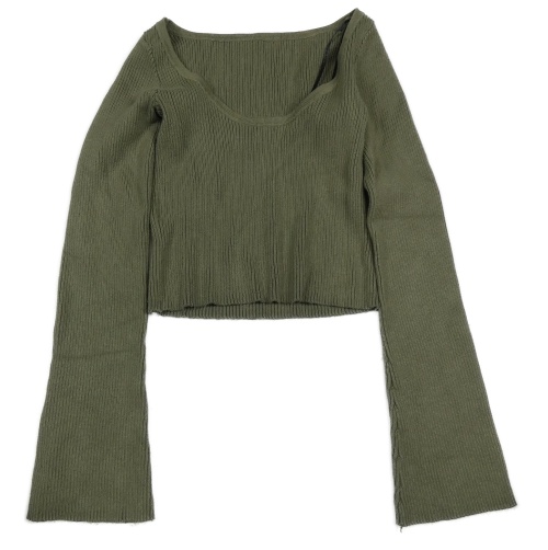 Khaki rebrovaný crop sveter H&M