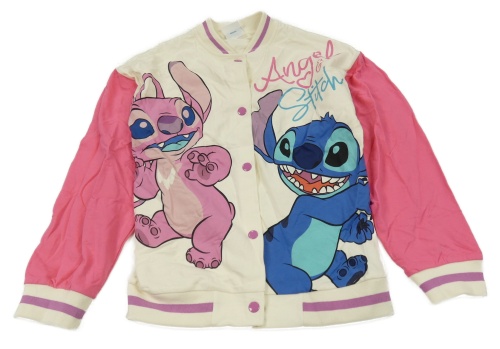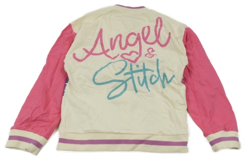 Smetanovo-tmavoružová baseballová mikina so Stitchem a Angelou Disney